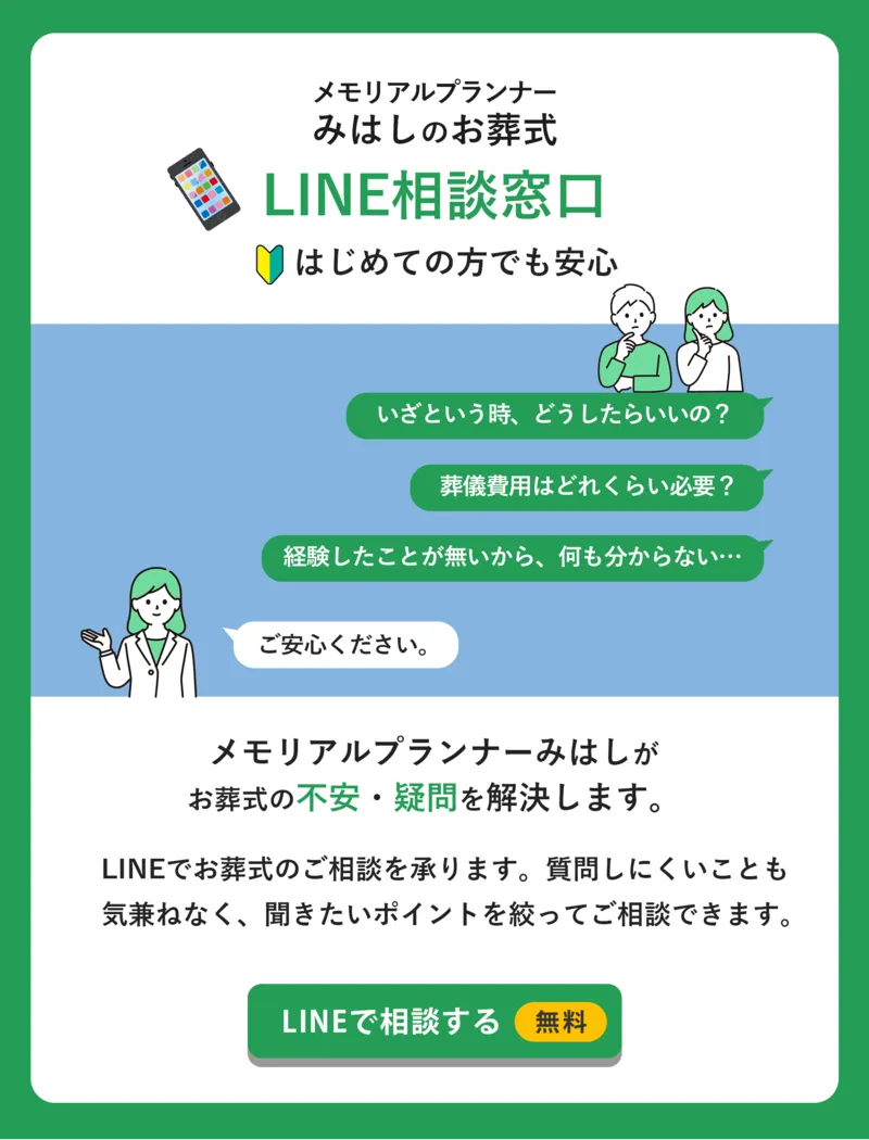 いざという時に慌てずに対処し、ご本人やご家族さまの思いを反映させた葬送の儀を行うためには、生前にある程度、お葬式のことを検討しておくことが大切です。メモリアルプランナーみはしに葬儀の事前相談してみませんか。事前相談は無料にてご案内しております。